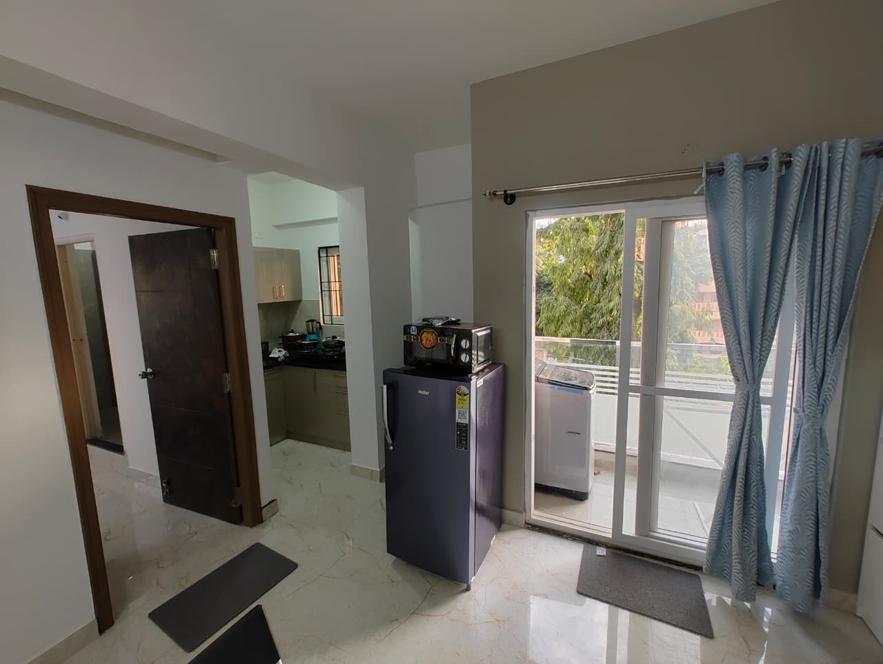 Our thoughtfully designed 1 BHK apartment offers a perfect blend of comfort and convenience, featuring a cupboard, wardrobe, bed, and a 3-seater sofa with a table. Enjoy modern amenities like a smart TV, refrigerator, washing machine, and a modular kitchen with a stove and chimney. The apartment includes a private balcony, 24/7 hot water, power backup, and round-the-clock security with CCTV surveillance. With lift access and dedicated 2-wheeler parking, this home ensures a hassle-free and secure living experience.