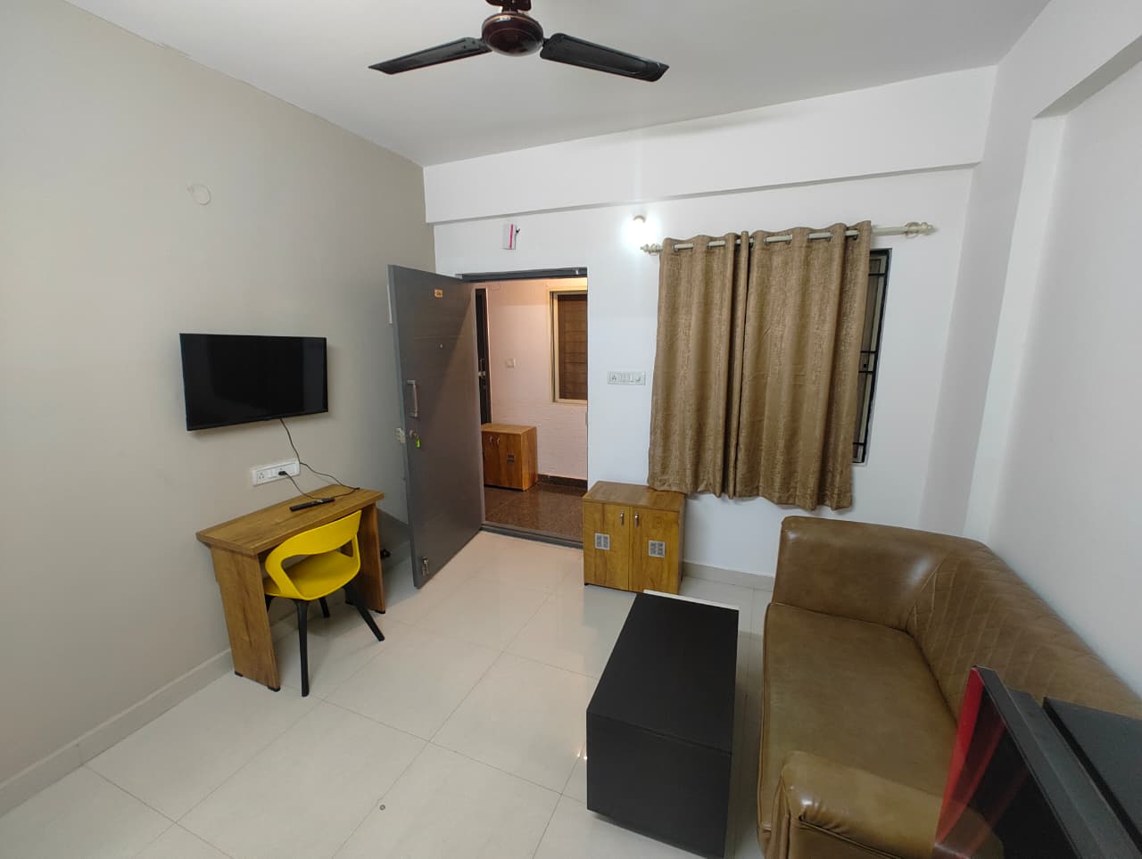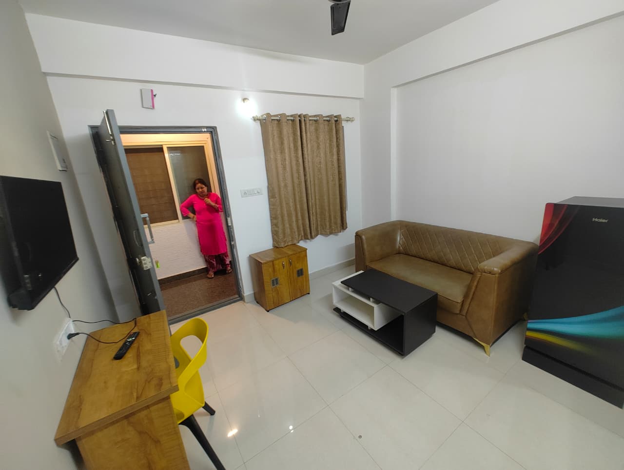 Our thoughtfully designed 1 BHK apartment offers a perfect blend of comfort and convenience, featuring a cupboard, wardrobe, bed, and a 3-seater sofa with a table. Enjoy modern amenities like a smart TV, refrigerator, washing machine, and a modular kitchen with a stove and chimney. The apartment includes a private balcony, 24/7 hot water, power backup, and round-the-clock security with CCTV surveillance. With lift access and dedicated 2-wheeler parking, this home ensures a hassle-free and secure living experience.