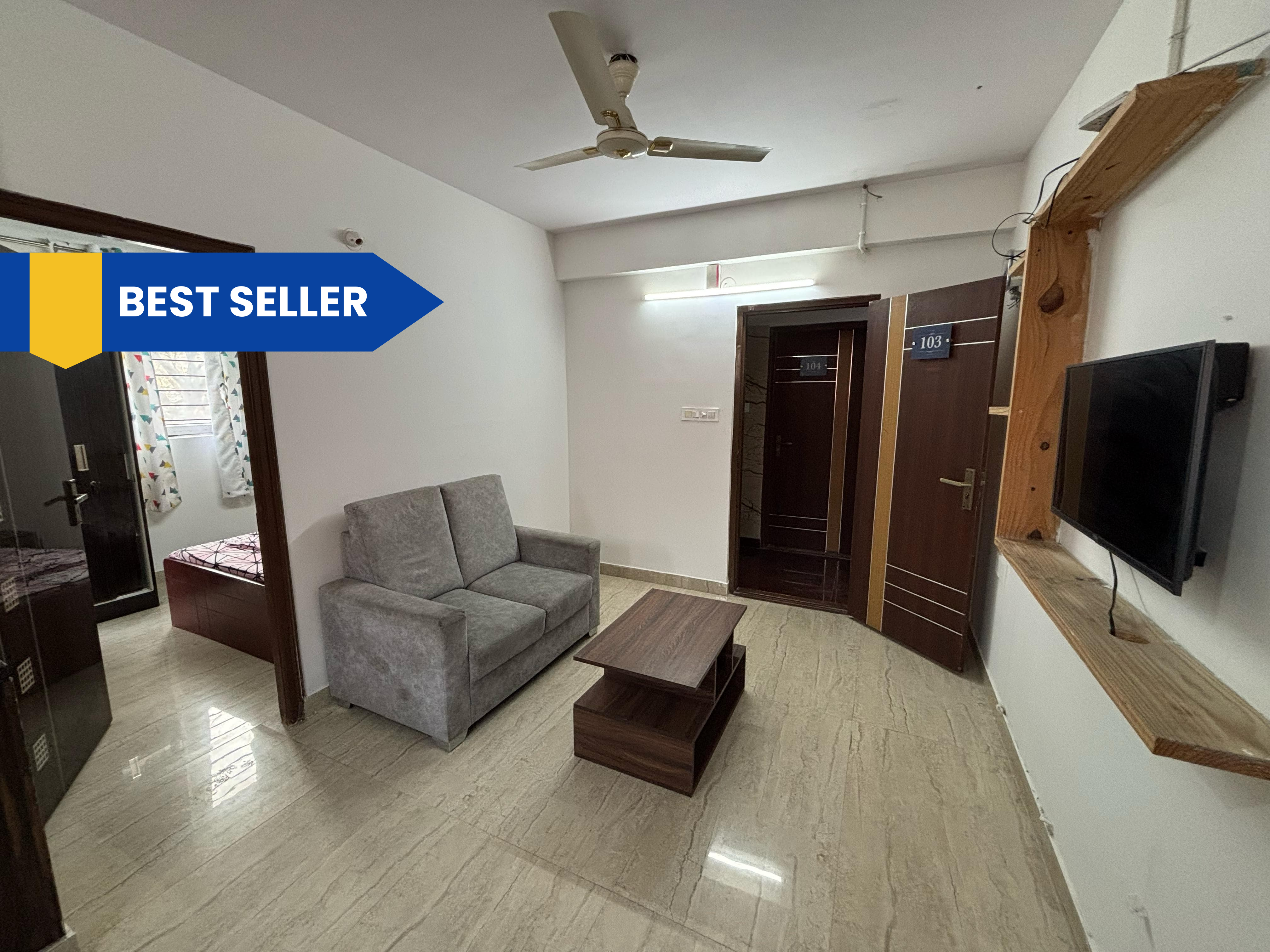 This well-designed 2BHK property offers a comfortable and modern living experience with essential amenities. It features a modular kitchen with a microwave and induction cooktop, ensuring convenience for daily cooking. The spacious living area includes a sofa and a smart TV, perfect for relaxation. Storage is well-managed with a cupboard and wardrobe, while curtains provide privacy. The home is equipped with a refrigerator and 24/7 hot water supply for added convenience. With 24/7 security, power backup, lift access, and 2-wheeler parking, this property ensures a secure and hassle-free lifestyle.