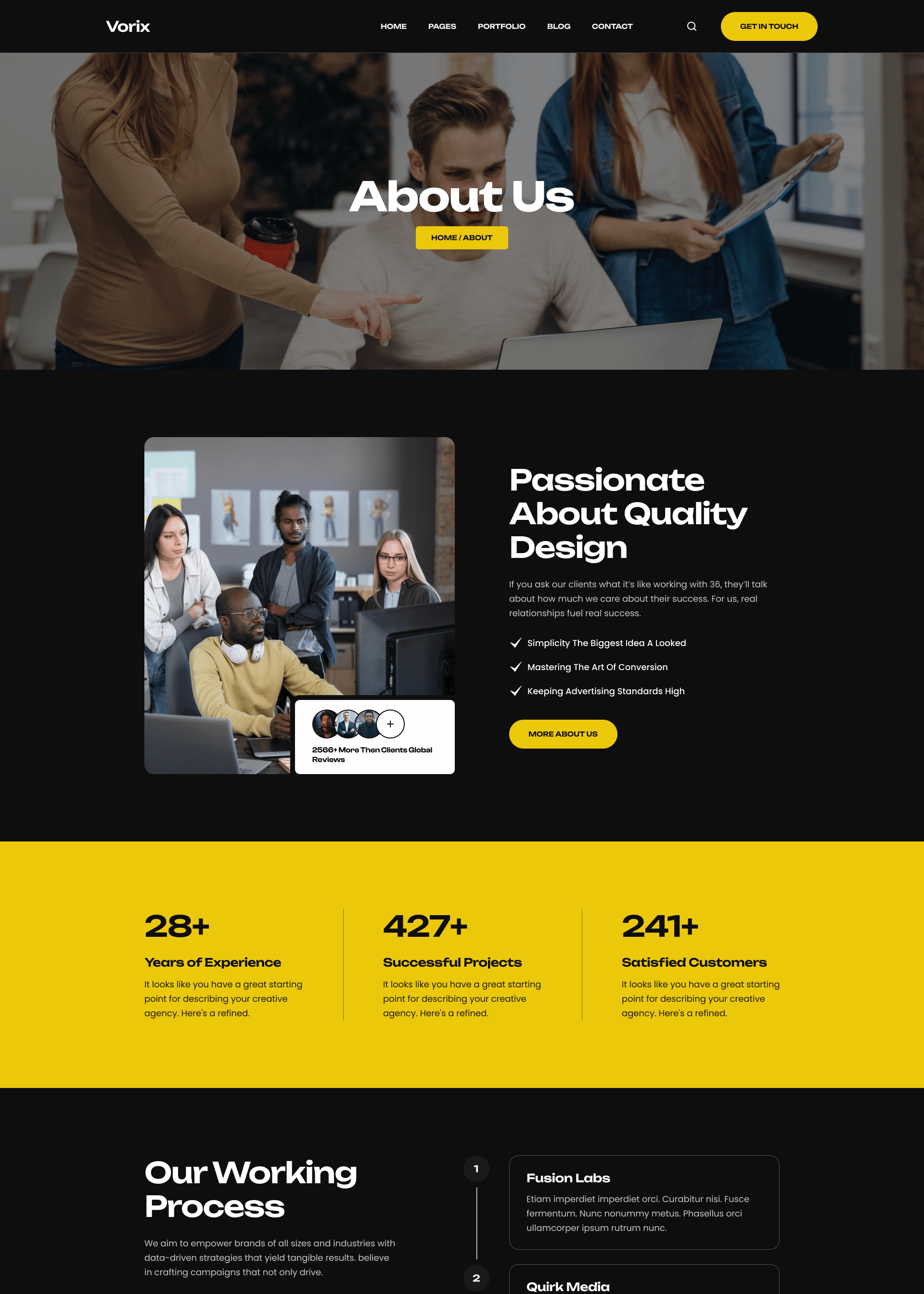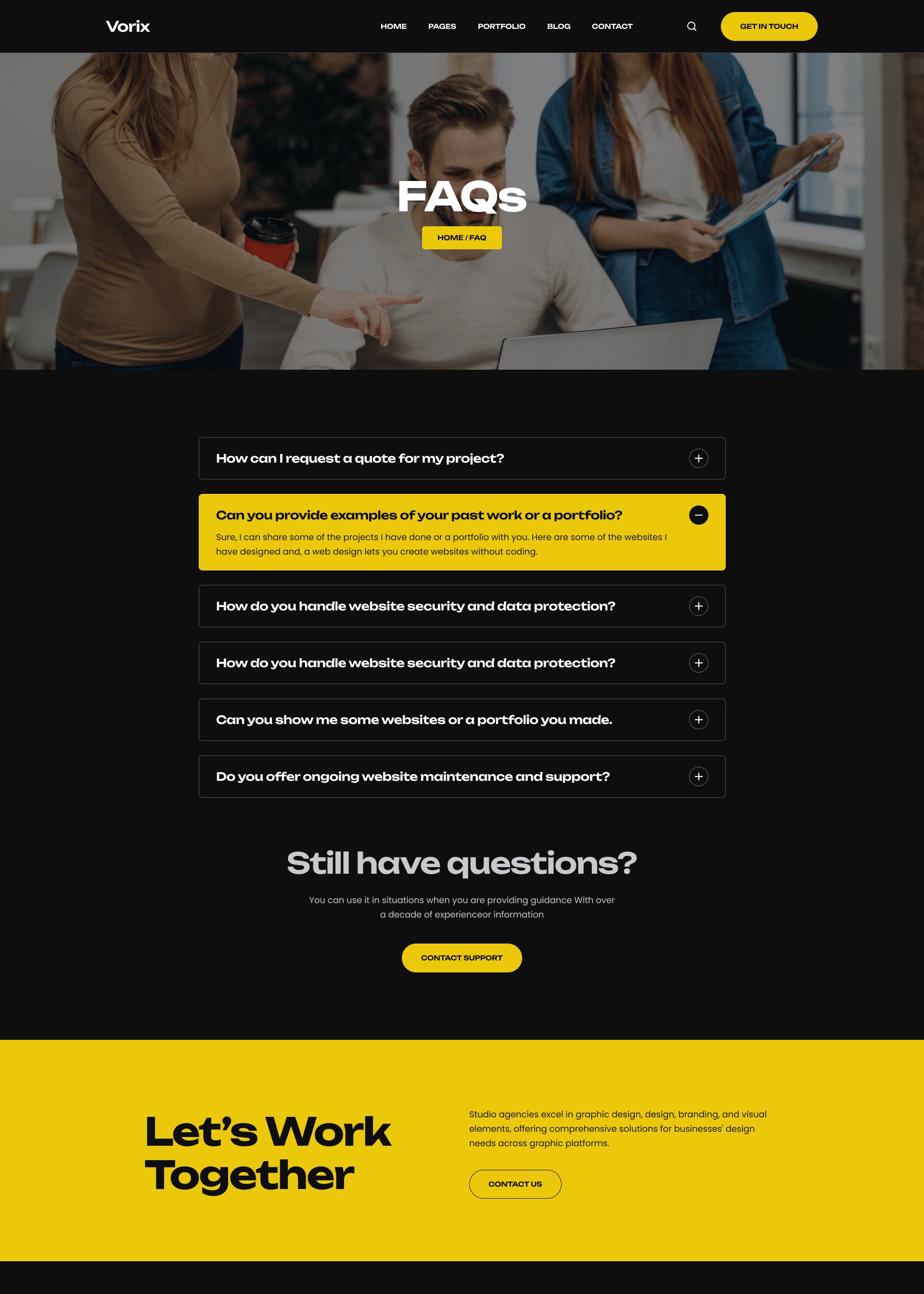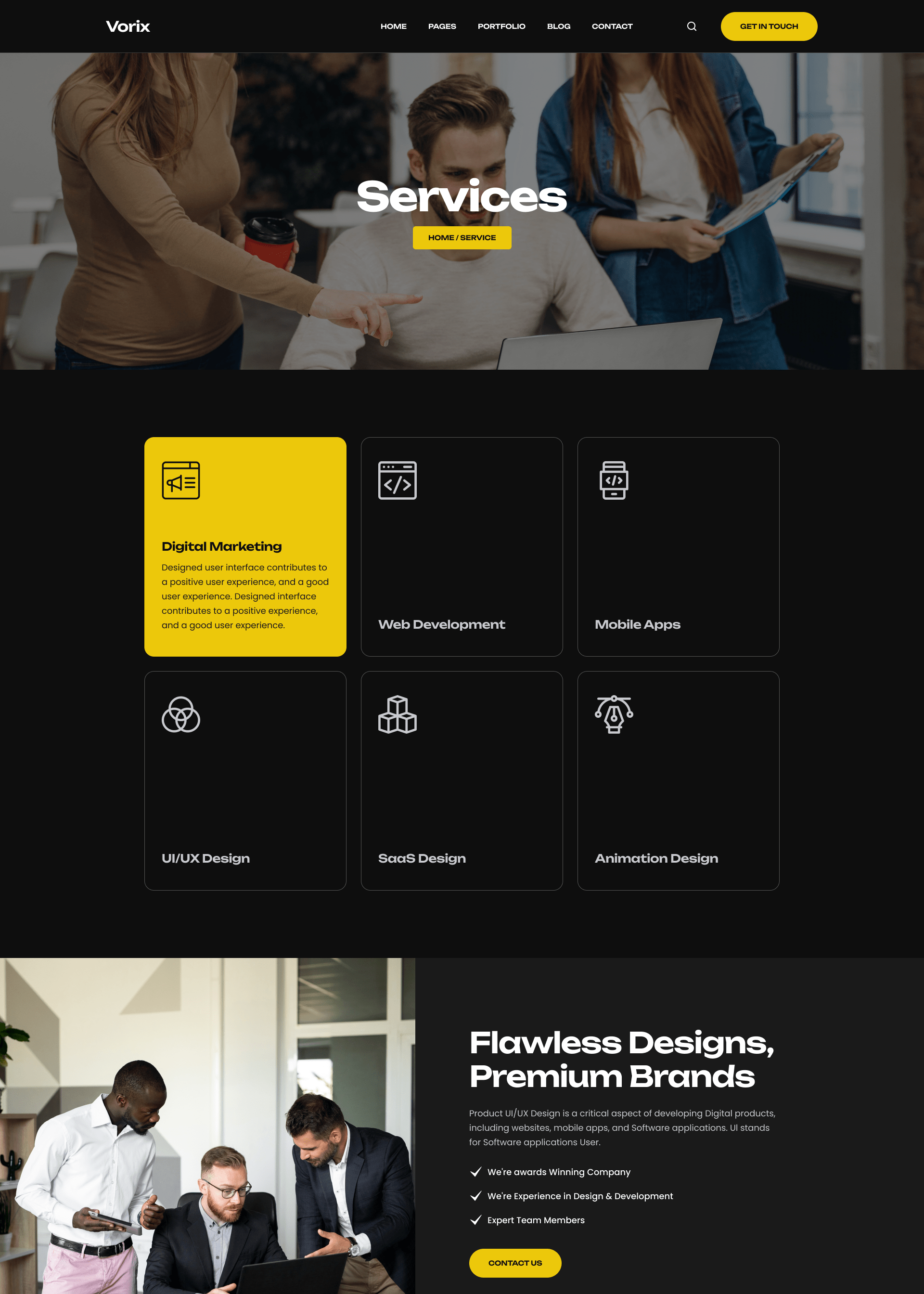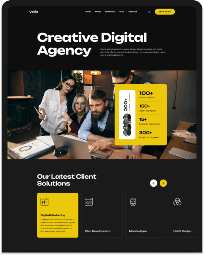 Vorix offers two unique homepage designs tailored for your Creative Agency and Portfolio website. Built with modern technologies and handcrafted with care, Vorix combines functionality and aesthetics seamlessly.