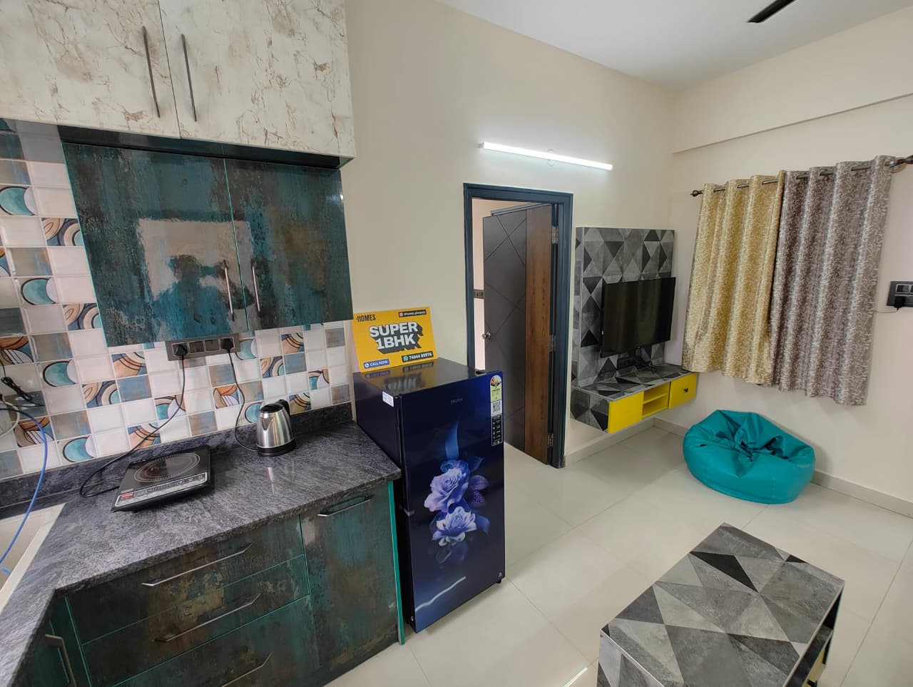 Our thoughtfully designed 1 BHK apartment offers a perfect blend of comfort and convenience, featuring a cupboard, wardrobe, bed, and a 3-seater sofa with a table. Enjoy modern amenities like a smart TV, refrigerator, washing machine, and a modular kitchen with a stove and chimney. The apartment includes a private balcony, 24/7 hot water, power backup, and round-the-clock security with CCTV surveillance. With lift access and dedicated 2-wheeler parking, this home ensures a hassle-free and secure living experience.